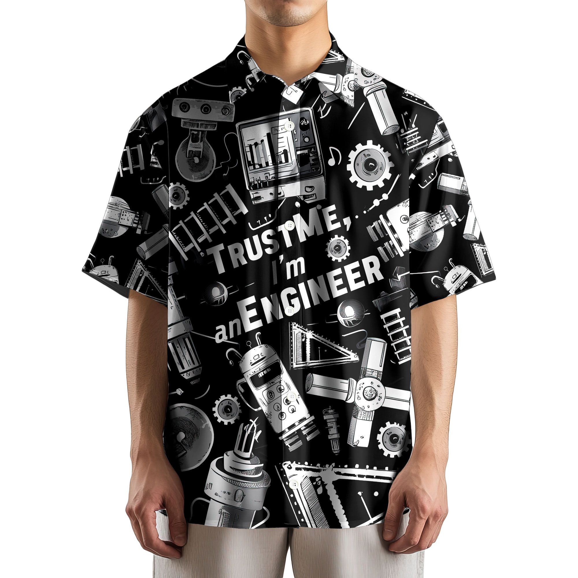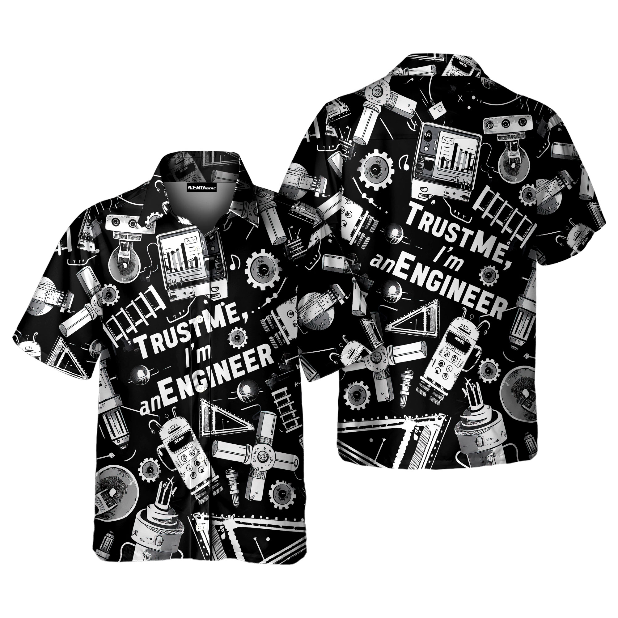 Nerdianic will show your nerd pride with this STEM-inspired Believe Me I'm An Engineer Science Button Up Shirt! Perfect for fans of funny math shirts and engineer T-shirt styles, as well as tech enthusiasts and math teacher tee shirts who enjoy nerd costumes. Featuring smart equations and geeky graphics, this comfy button up or t-shirt is a smart choice for every knowledge seeker.