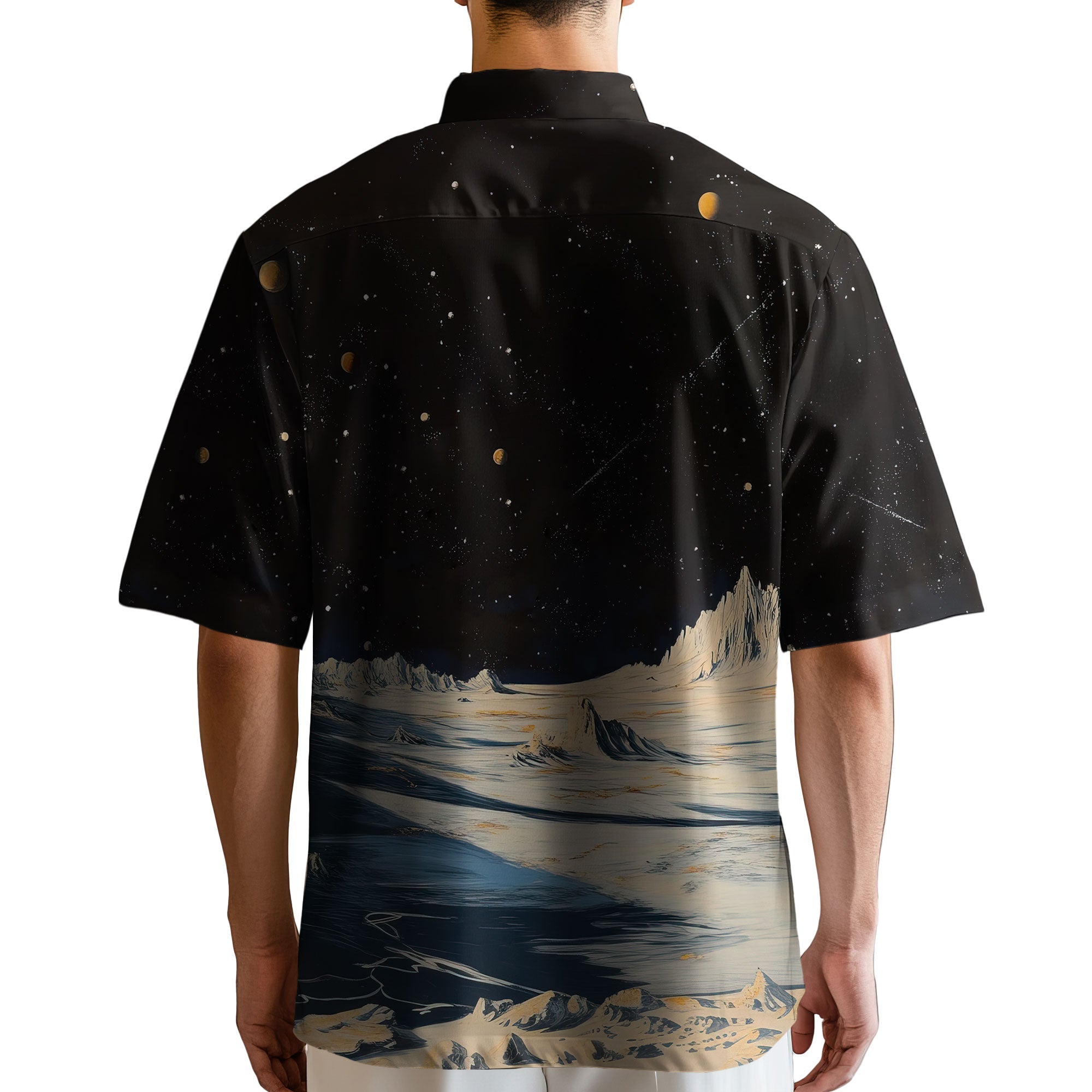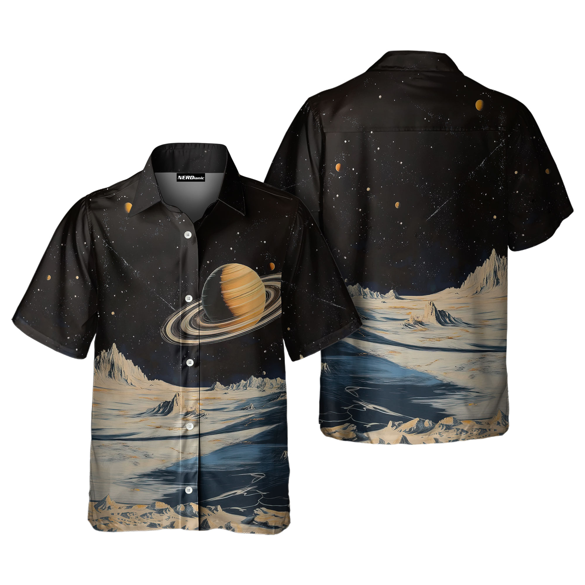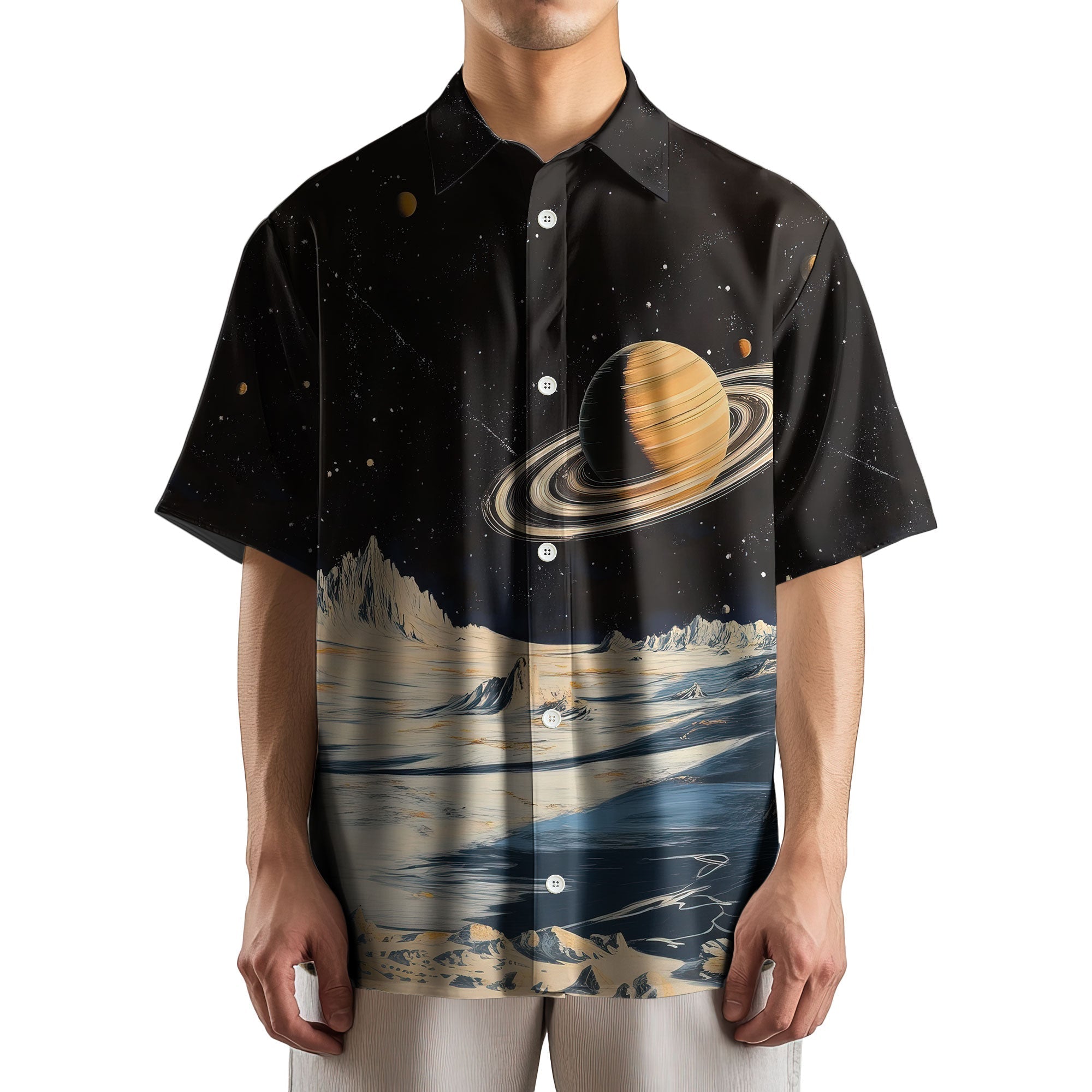 GIFTS FOR NERDY GUYS: This short-sleeved shirt features a stunning and detailed design inspired by Saturn and its majestic rings, set against a cosmic backdrop of stars and distant moons. Perfect for space enthusiasts or anyone captivated by the wonders of the universe, this shirt adds a bold and artistic touch to any casual look