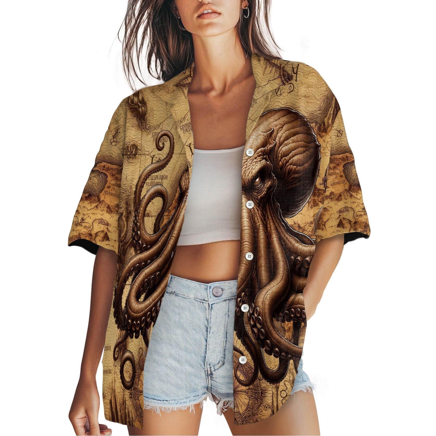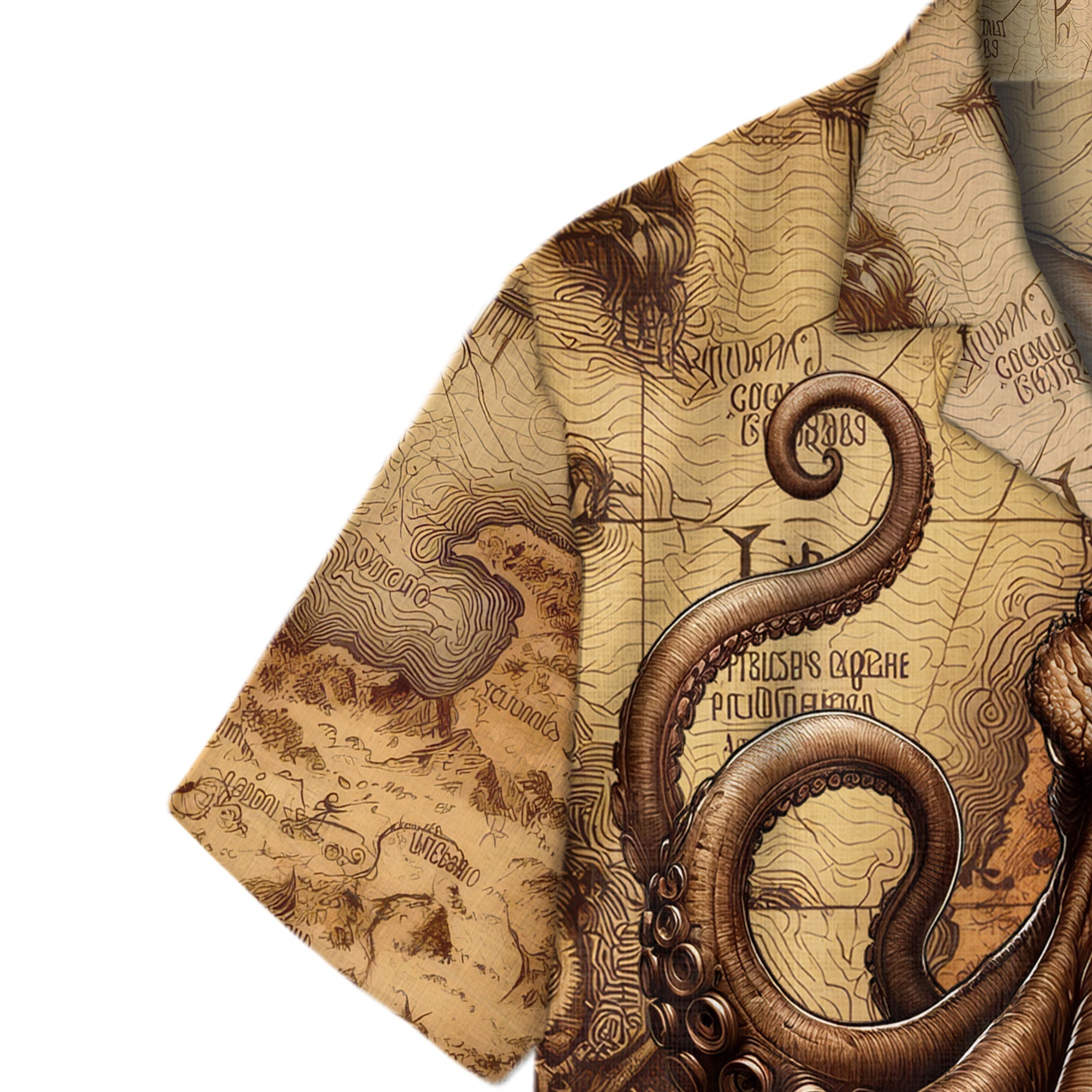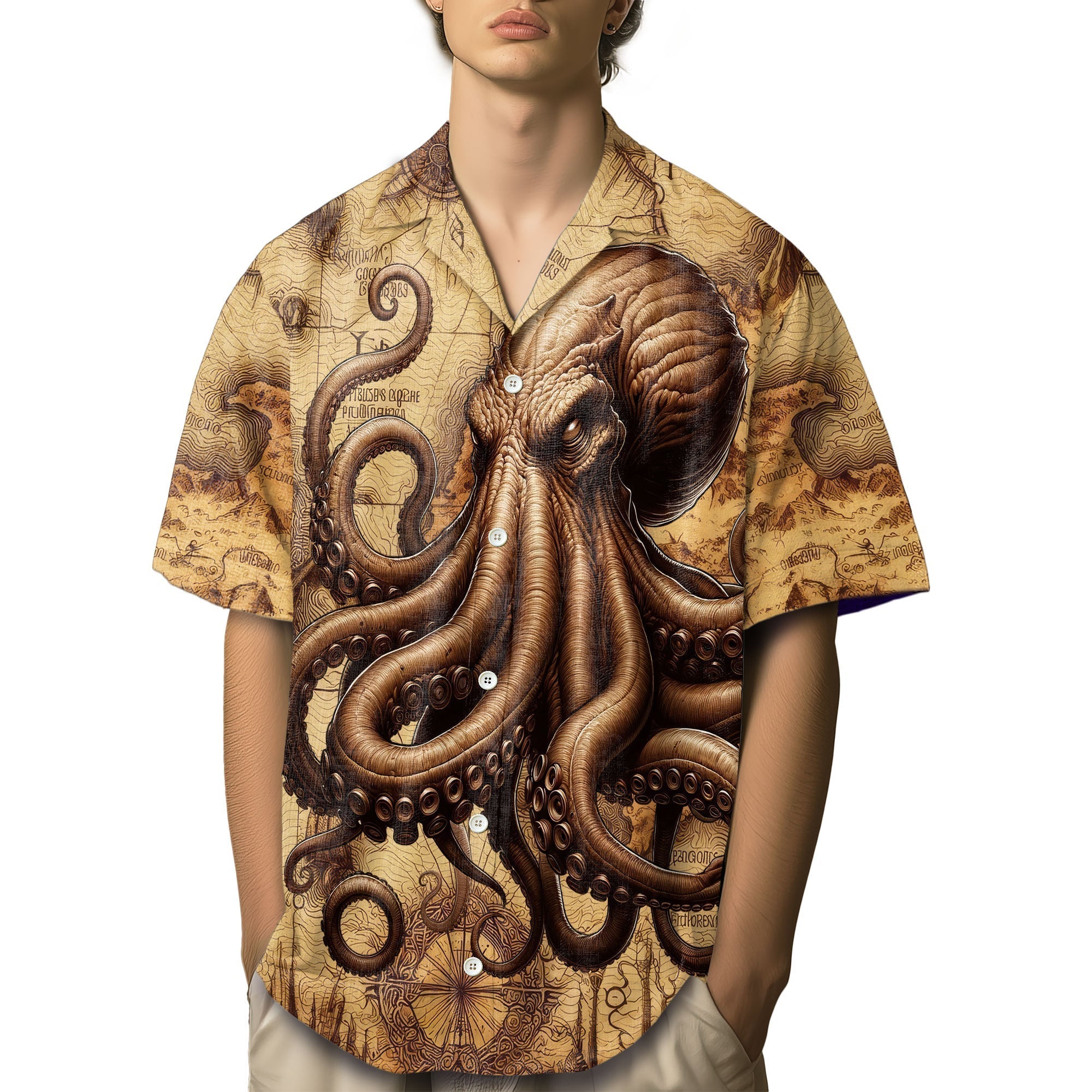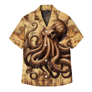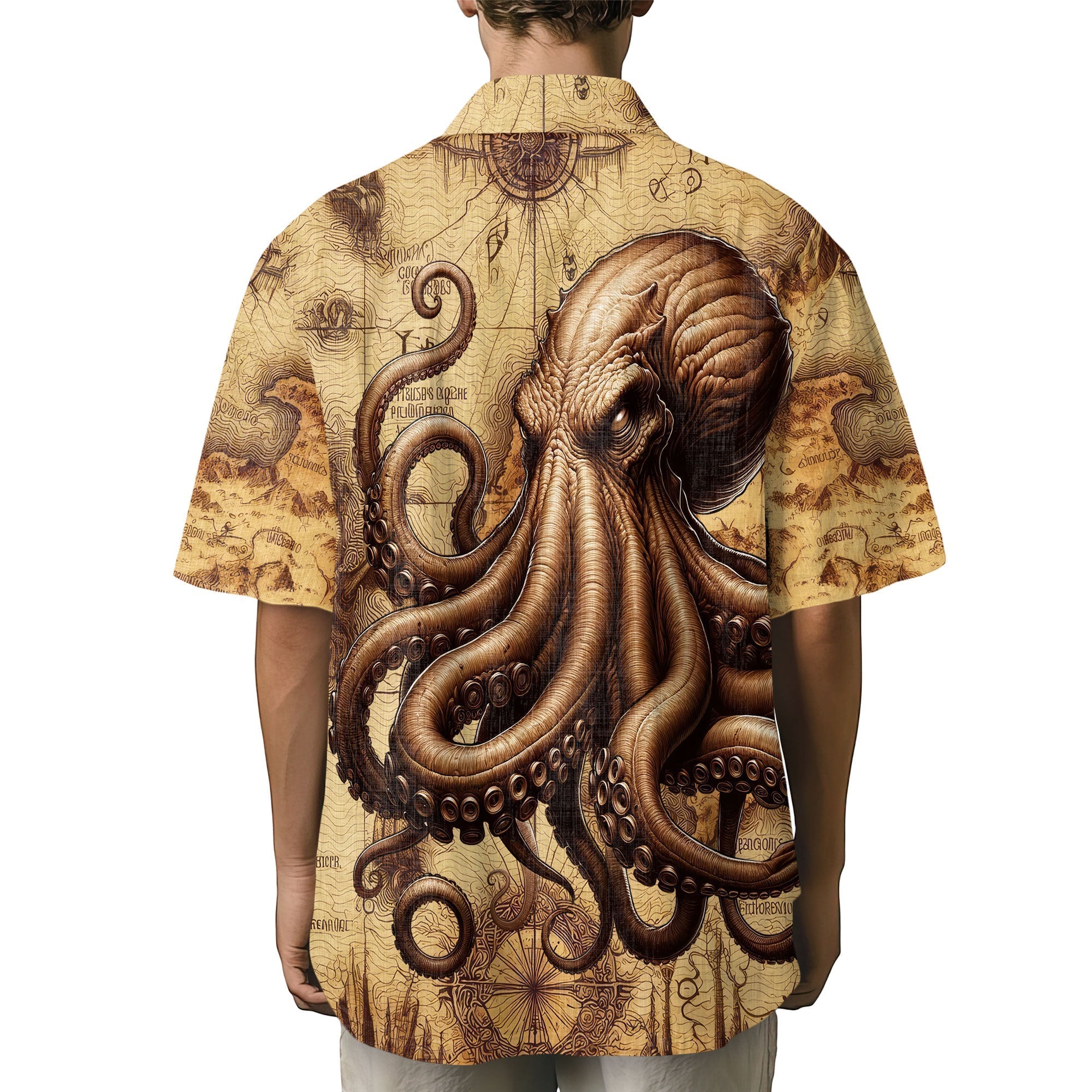 Nerdianic will show your nerd pride with this Giant Octopus Graphic Geek Hawaiian Shirt - a modern Hawaiian shirt designed for fans of dragon shirts, octopus shirts, and fantasy shirts alike. With bold fantasy graphics and a comfy fit, this standout piece brings a playful twist to classic Hawaiian style for every adventure seeker.