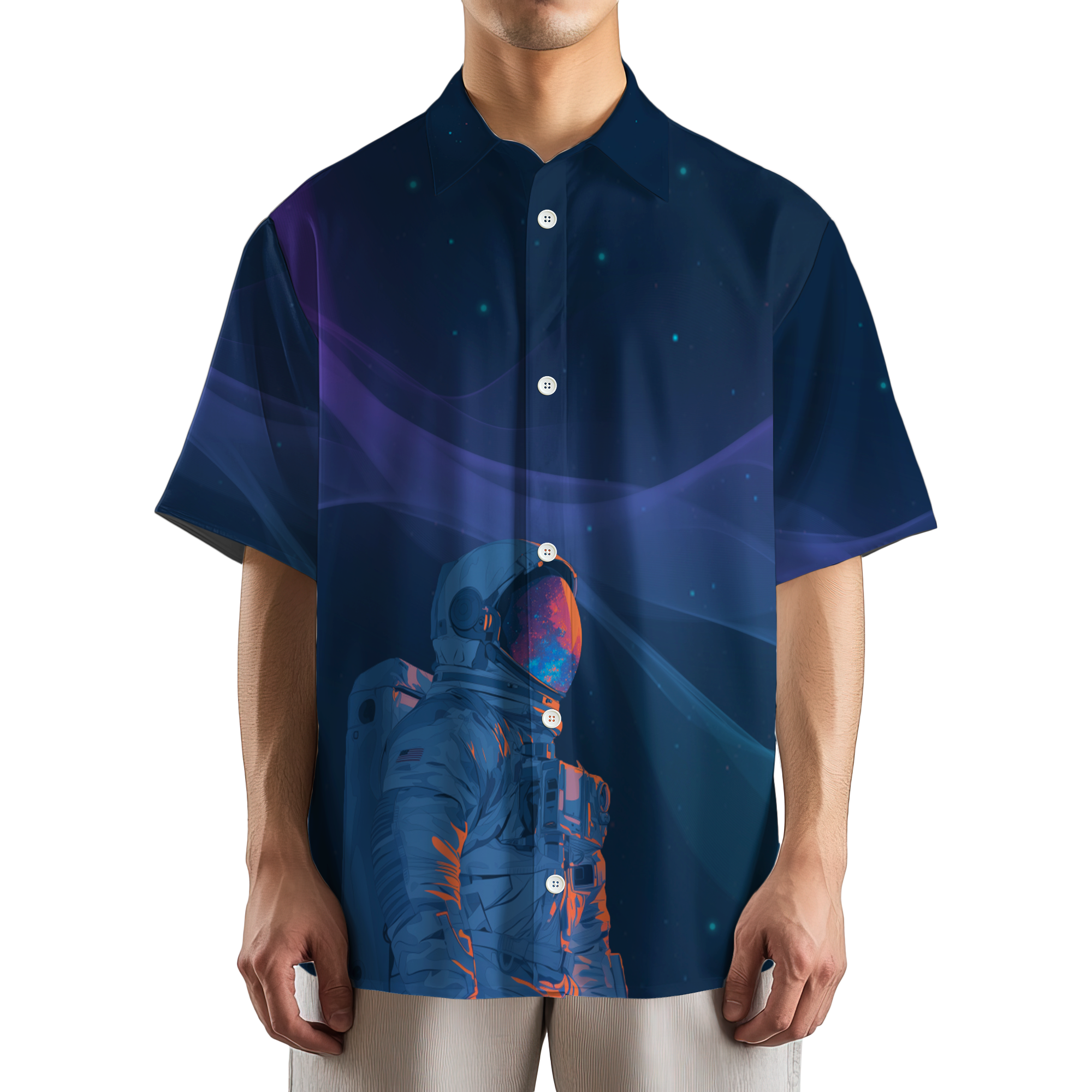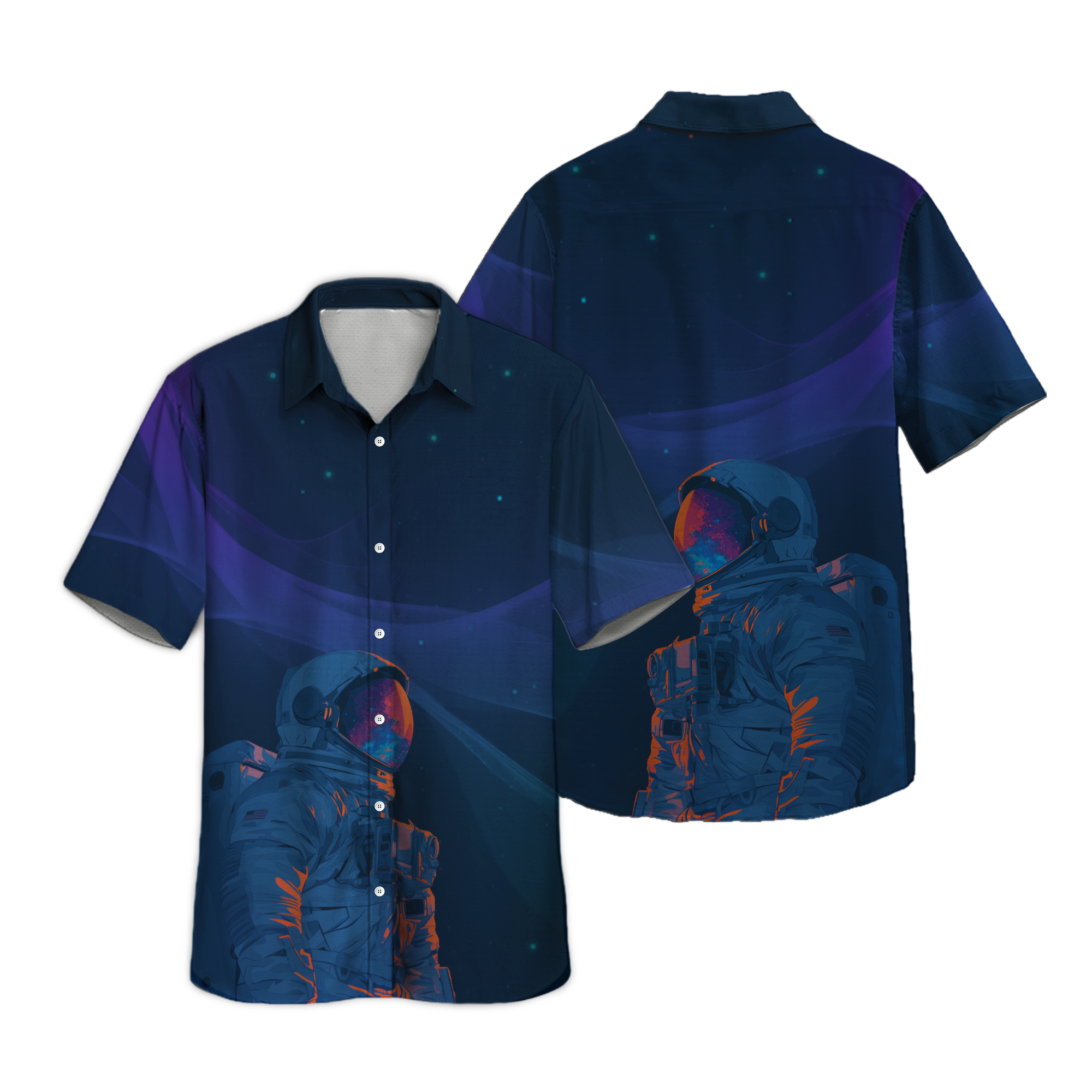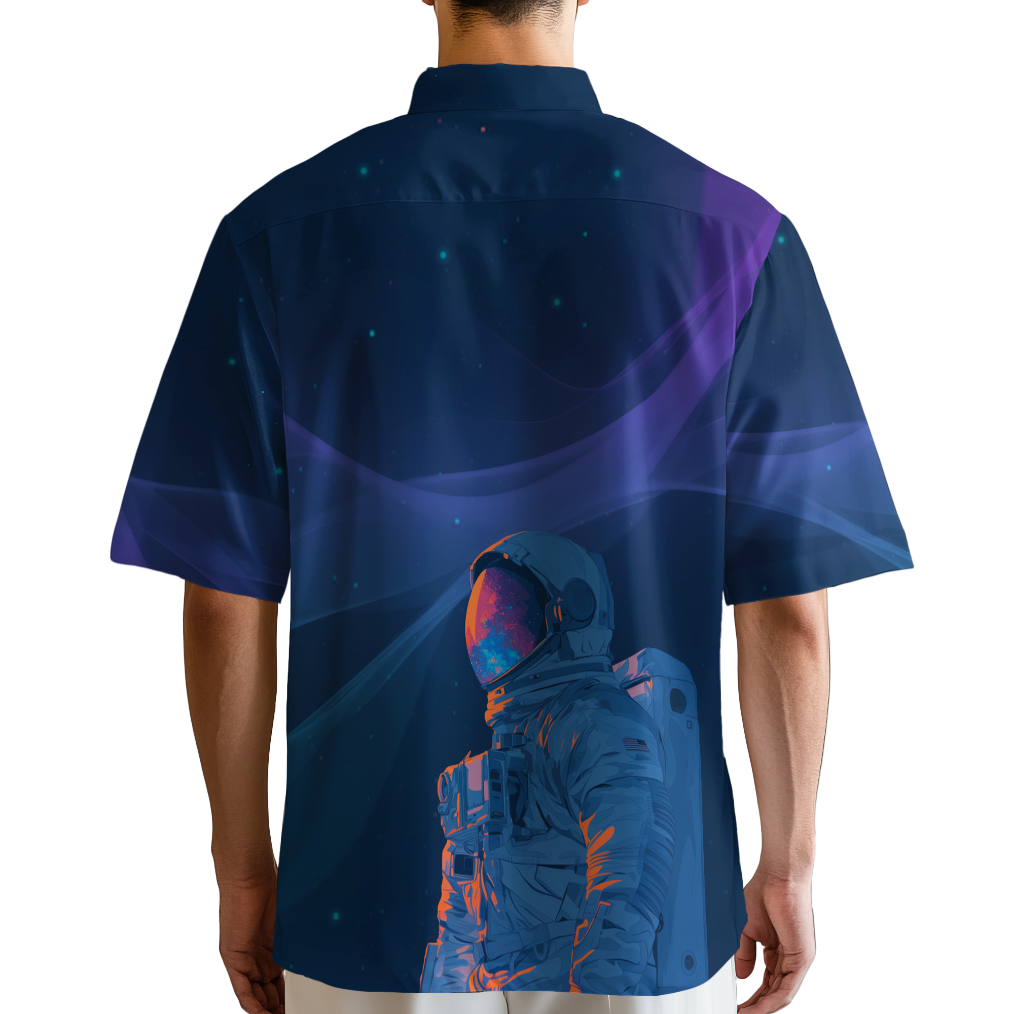 - This "Astronaut" shirt features a lone space explorer sitting against a dreamy blue galaxy, capturing the spirit of adventure and curiosity beyond our world