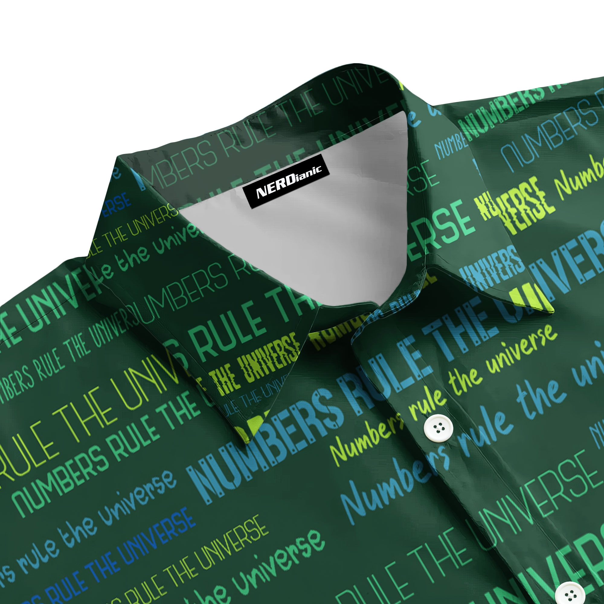Nerdianic will show your nerd pride with this STEM-inspired Numbers Rule The Universe Science Button Up Shirt! Perfect for fans of funny math shirts and engineer T-shirt styles, as well as tech enthusiasts and math teacher tee shirts who enjoy nerd costumes. Featuring smart equations and geeky graphics, this comfy button up or t-shirt is a smart choice for every knowledge seeker.