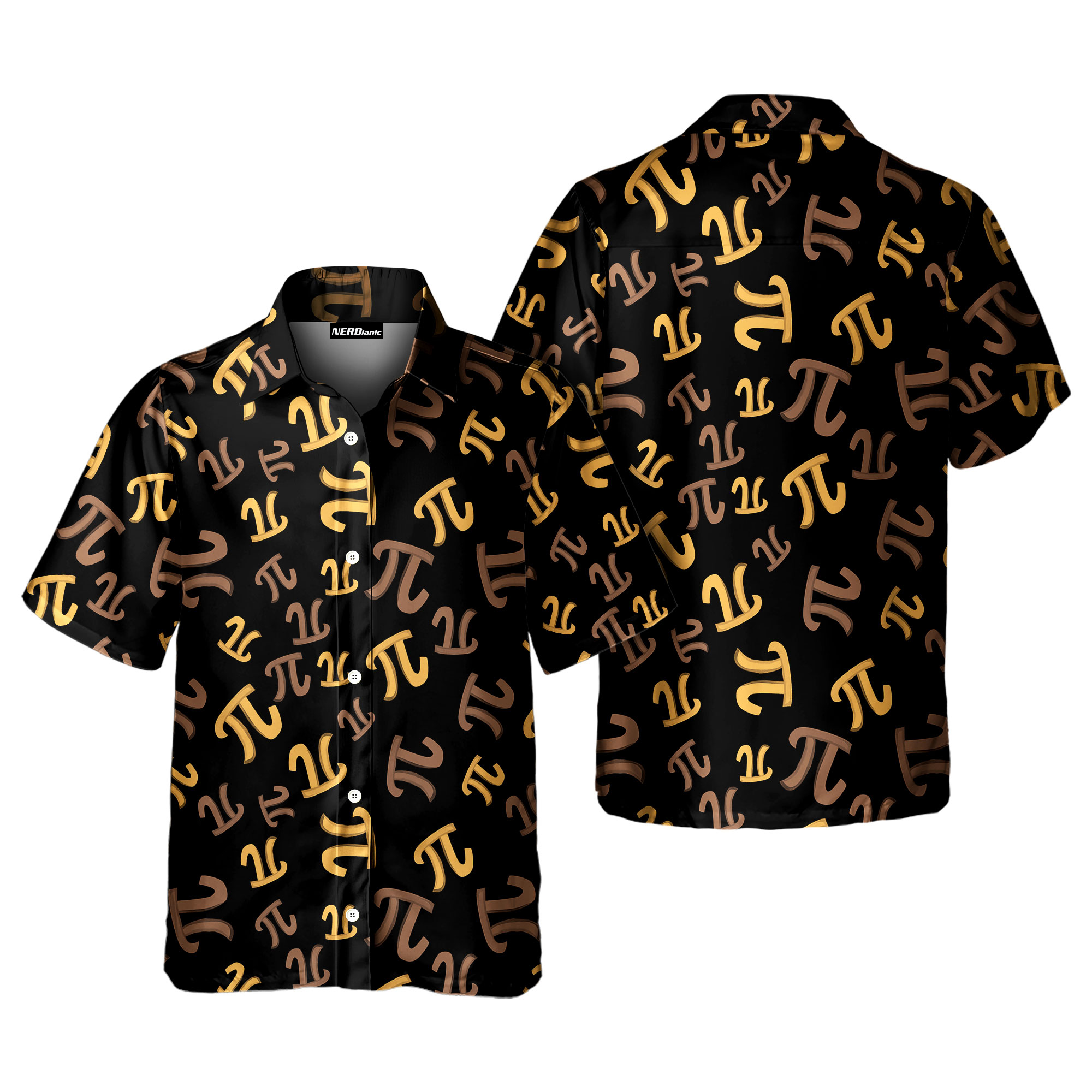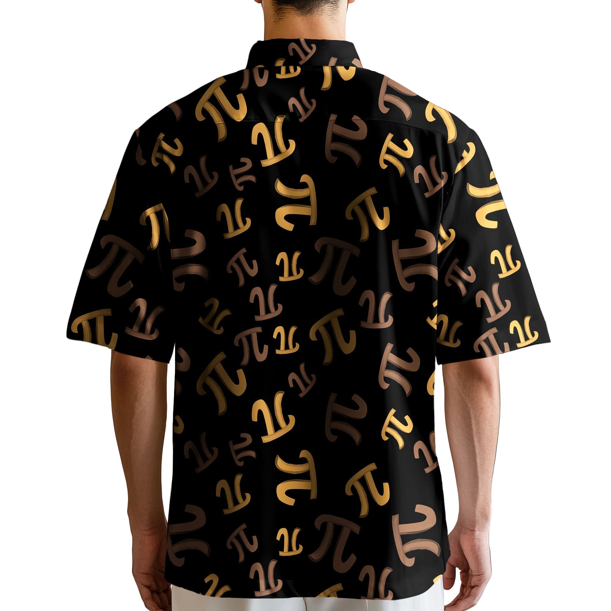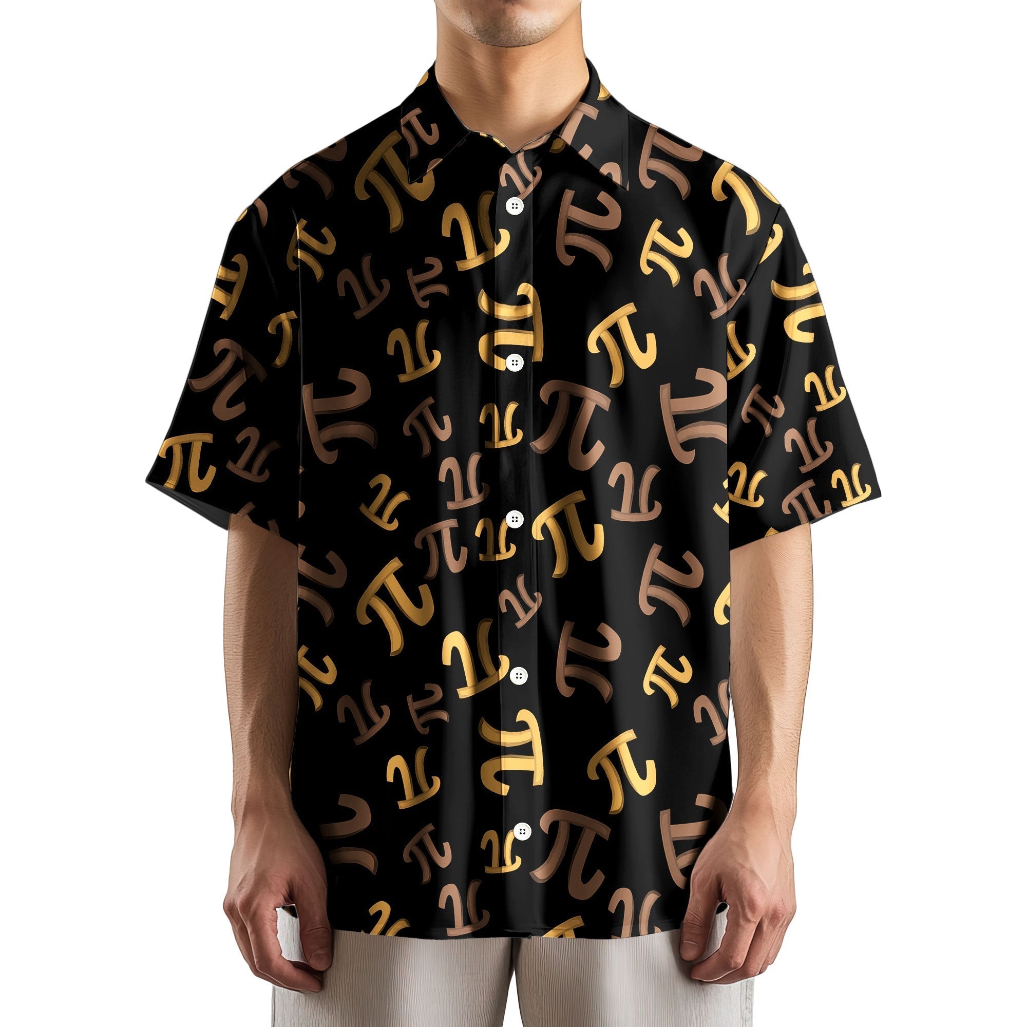 GIFTS FOR NERDY GUYS: This short-sleeved Pi symbol button shirt features a sleek and modern design with bold, repeating Pi symbols in gold and bronze tones on a deep black background. This funny math shirt creates a perfect conversation starter for math enthusiasts or anyone looking to showcase their love for numbers. Ideal gifts for math teachers