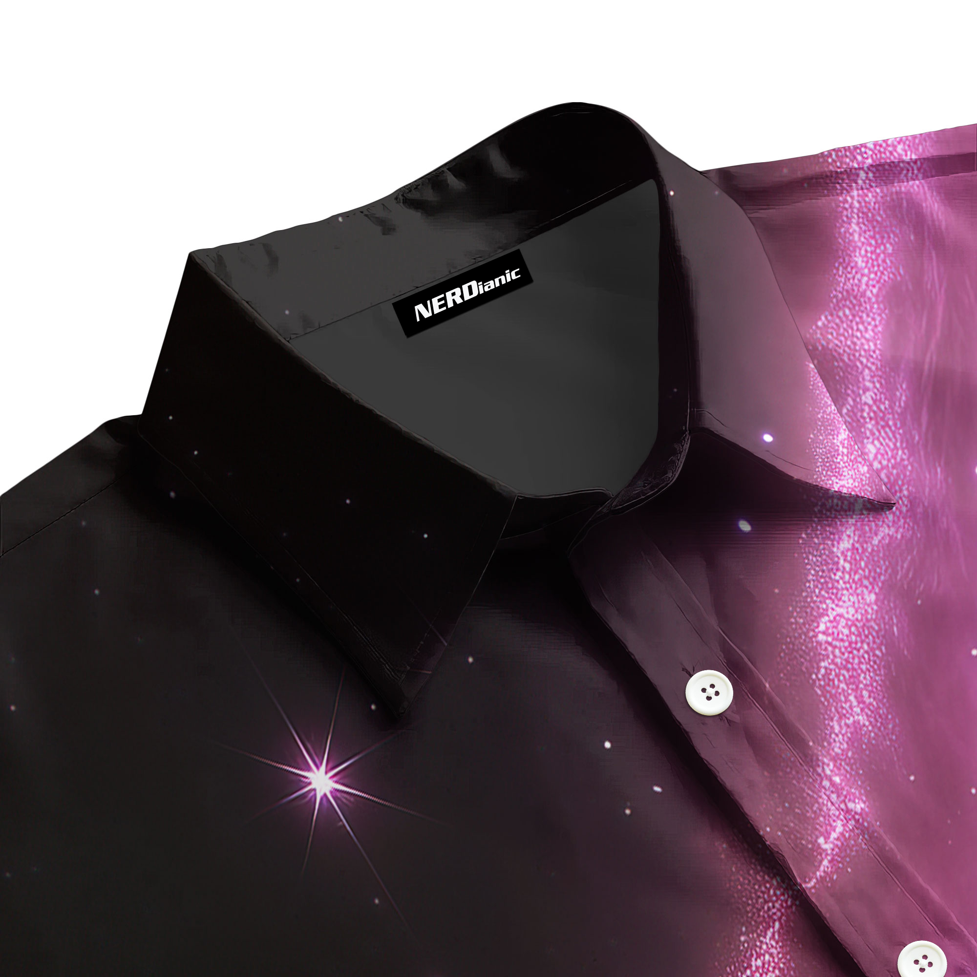 Nerdianic will show nerd pride with this Pink Galaxy Retro Space Button Up Shirt, the ultimate shirt space fans love! This vintage space shirt is perfect for anyone who enjoys unique space shirts or a funny nerd costume. Featuring cosmic graphics and a comfy fit, it’s a stellar pick for every knowledge seeker.