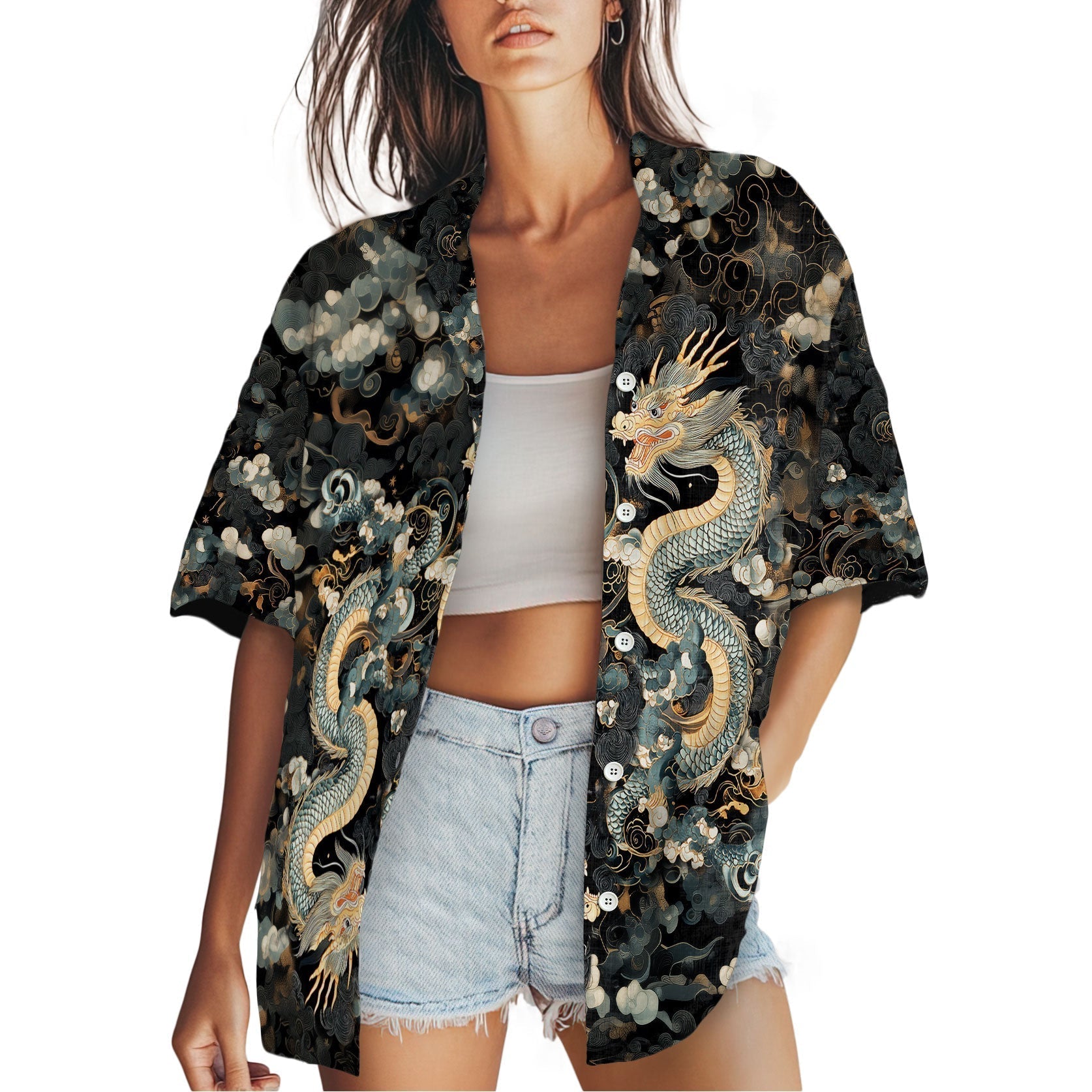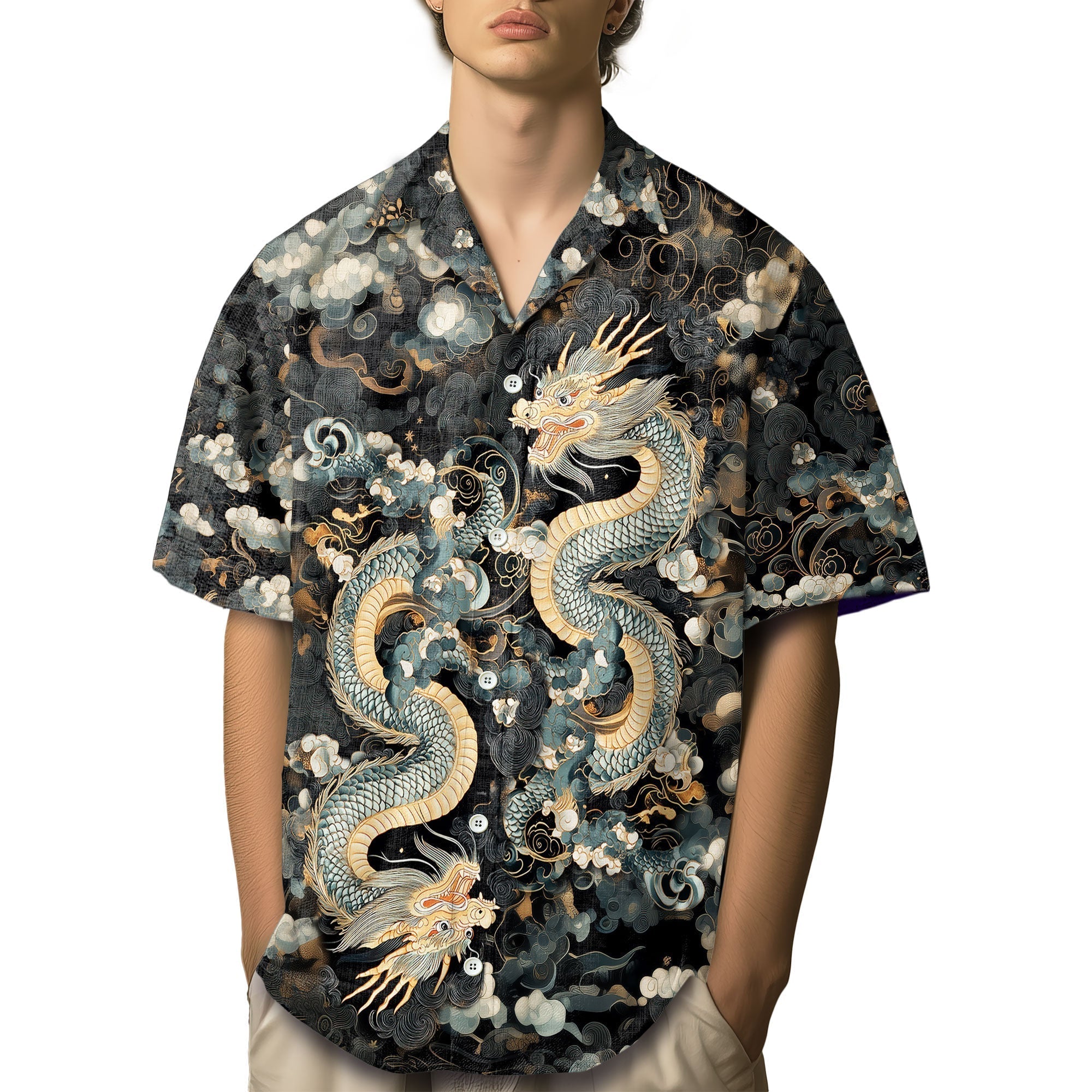 Nerdianic will show your nerd pride with this Traditional Chinese Dragon Geek Hawaiian Shirt - a modern Hawaiian shirt designed for fans of dragon shirts, octopus shirts, and fantasy shirts alike. With bold fantasy graphics and a comfy fit, this standout piece brings a playful twist to classic Hawaiian style for every adventure seeker.
